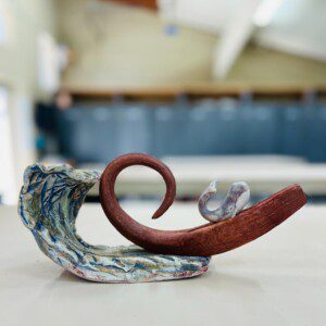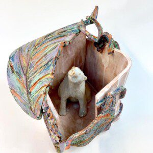 “Prior to 2022, I worked in the bustling member studio, Fireseed Clay Art Studios in South Austin. I love working near and with other artists. The energy is contagious! My husband and I built my current studio in Bastrop in 2021 and I also love the focus I can find in my quiet, cluttered space. I play music, research and work 4-6 hours a day.“