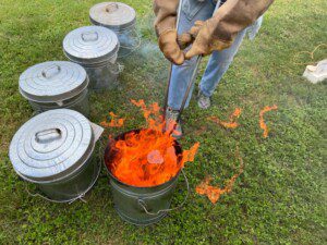 “I like physical or visual texture. So sometimes the pieces are heavily textured in the making process or after first firing with textured glazes. I’ve been enjoying alternative firing lately and am now also creating carefully orchestrated surface designs with chlorides, sulfates, and flammable items.”