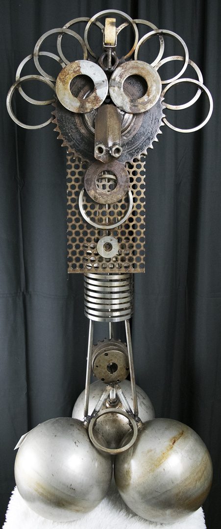 I am a modern-day Renaissance Artist – I draw, paint, cook, and do architectural design, along with digital art and photography. While my paintings on canvas and Mixed media art are becoming increasingly popular, I’m now best known for what I call “Green Metal Art,” where I take scraps of metal and/or mechanical parts deemed unusable by most standards and weld them into various artistic shapes, forms, figures, and concepts. I believe in whenever possible take materials that may have been otherwise discarded and transfer them into beautiful art. It’s my way of recycling trash into artistic treasures.