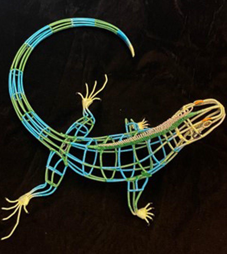 I sculpt primarily with wire and glass beads. I think my art is unique in a way that allows me to explore all kinds of subject matter. My sculptures include animals, musical instruments, fish, automobiles, insects, ships, reptiles, plants and more. I get inspiration every day from this creative environment. I do commission work and love a good challenging subject but most of the sculptures I have created take weeks or months to complete. It is a labor of love for me. Please feel free to contact me by email if you are interested in my work.